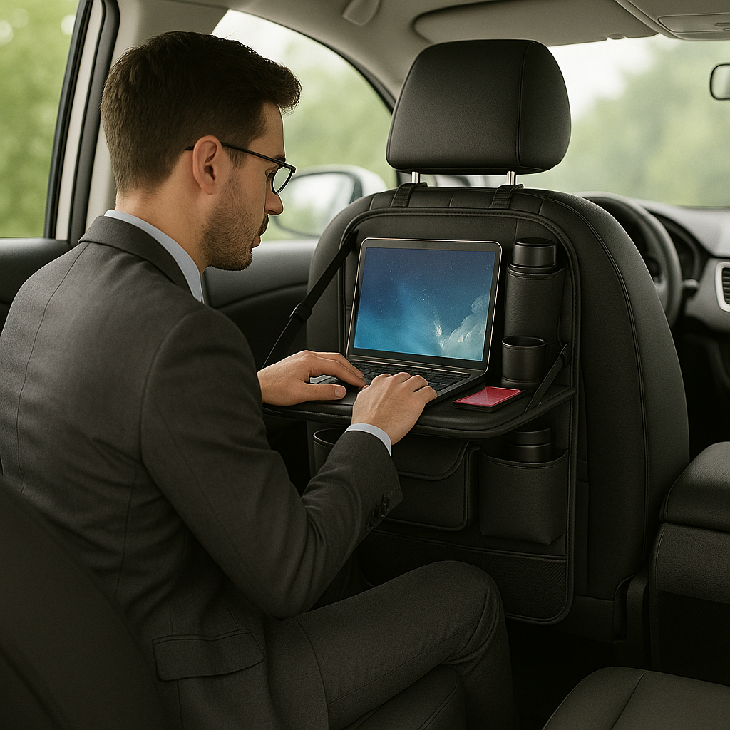 Sa tablette pliable sert à la fois de support repas ou bureau nomade, tandis que ses poches multiples accueillent bouteilles, téléphones, documents ou accessoires avec un ordre impeccable. Étanche, anti-salissure et facile à entretenir, Ruben s’adapte à la majorité des véhicules.